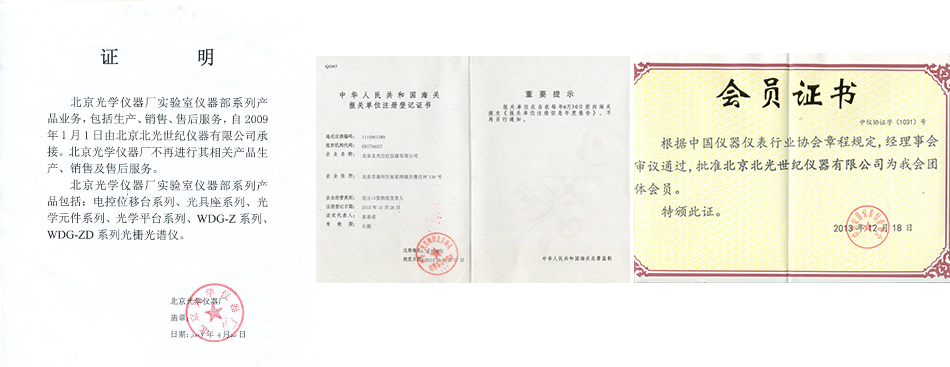 BeiJing Optical Instrument Factory Certificate Of Registration Member Certificate