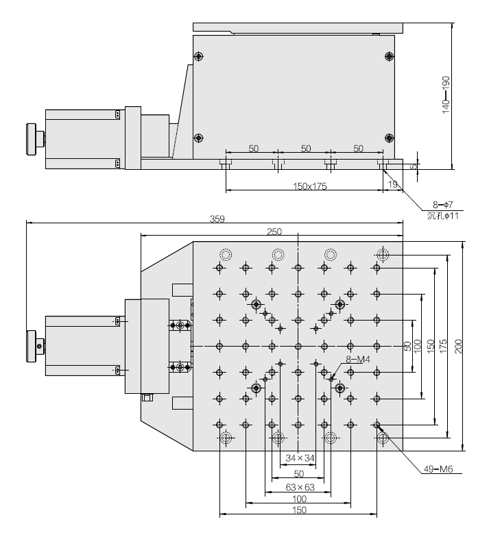 1.臺面200X200mm,行程50mm,承載40kg 2.導程1.5mm,傳動比1:1,重復定位精度0.003mm