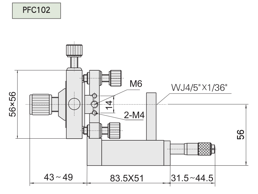 - PFC101型精密光纖耦合器與顯微物鏡座一體化,便于光束與光纖耦合