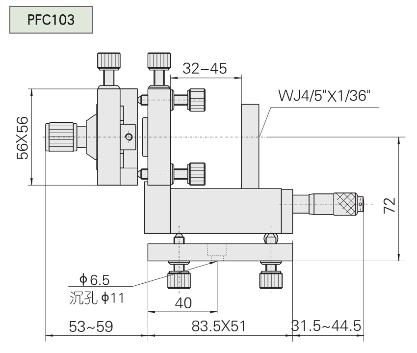 PFC101型精密光纖耦合器與顯微物鏡座一體化,便于光束與光纖耦合